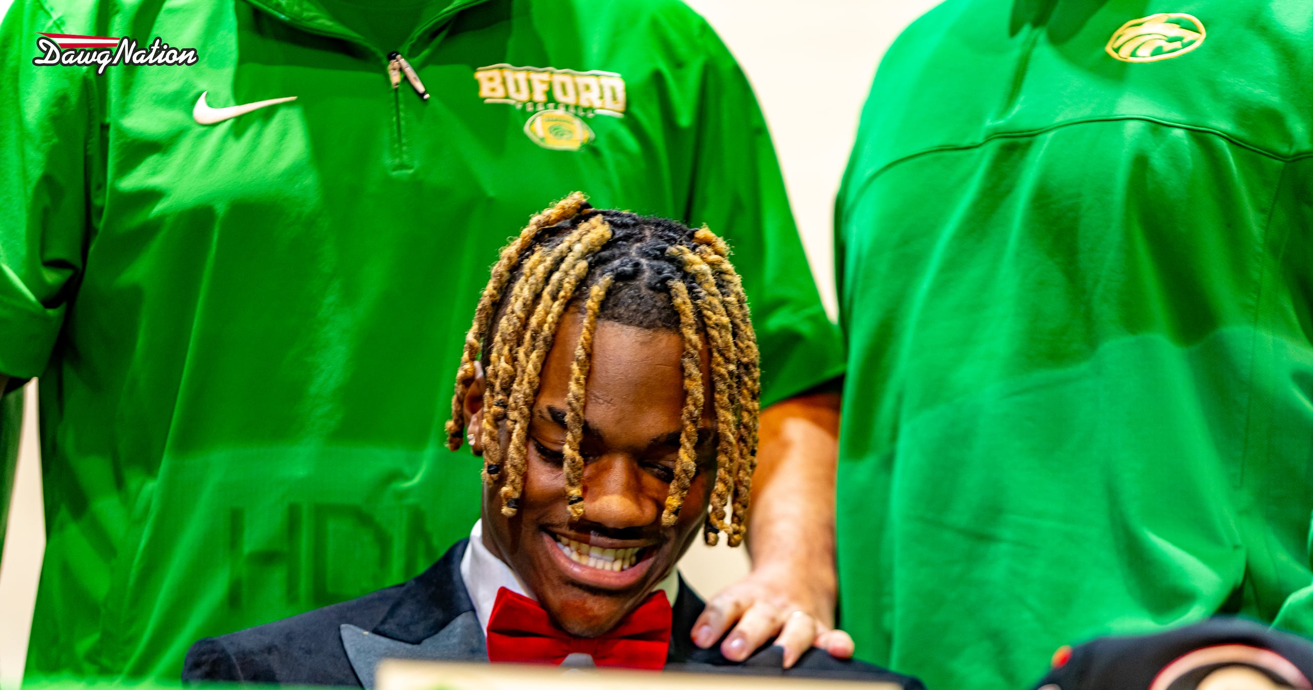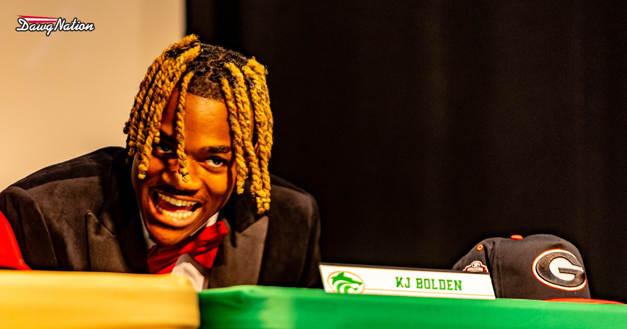 “What my decision came down to was just the place like I felt would get me to the ultimate goal of playing in the NFL,” KJ Bolden said while reading a statement as he met the press. “It is not about the NFL or facilities for me. It is about relationships and development. I prayed with my family and with the help of my family, I’m going to start my future off with staying home. So I chose the ‘Dawgs. Go ‘Dawgs.”